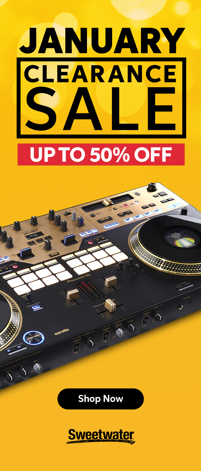 From our friends at Sweetwater! Start the New Year strong with up to 50% off gear you’ll love! Free shipping included. Click here, or the image below.